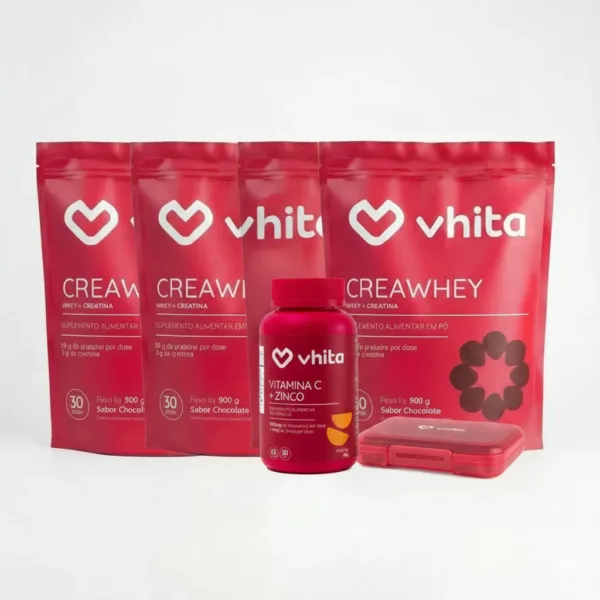 O CreaWhey Vhita combina 19g de whey protein e 3g de creatina por dose para apoiar quem busca ganho de massa muscular, entender para que serve o whey protein no dia a dia e aproveitar os benefícios da creatina na performance. É a forma prática e inteligente de unir whey + creatina em uma única dose. A escolha certa para quem deseja performance, recuperação e uma longevidade inteligente.
