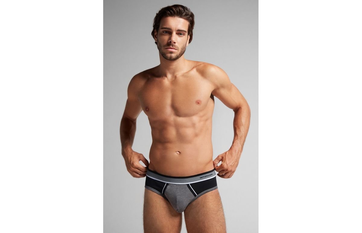 Cueca Slip em algodão Supima elástico com cores contrastantes. Possui elástico macio multicolorido visível com logotipo.
