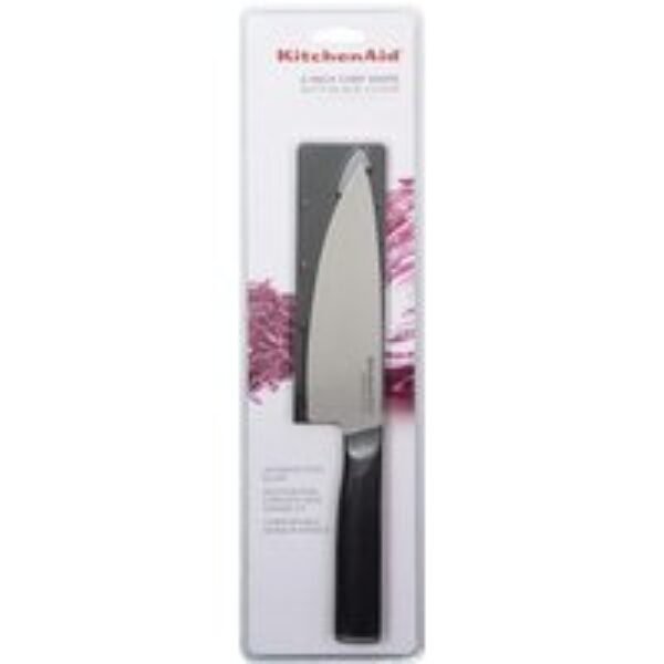 faca chef 6 polegas a faca chef kitchenaid é a principal faca da sua cozinha, pois é ideal para uma variedade de tarefas de corte, incluindo picar, cortar e fatiar. as facas forjadas kitchenaid são habilmente fabricadas com aço japonês semi-polido de alto carbono – endurecido e temperado para fornecer uma borda de longa duração para um corte profissional de qualidade sempre.inclui capa protetora da lâmina para armazenamento. as facas kitchenaid são extremamente afiadas.mantenha fora do alcance das crianças.a lavagem a mão é recomendada, no entanto, esta faca pode ser lavada na máquina de lavar louça, apenas no rack superior. para todos os talheres finos, os melhores resultados são obtidos lavando a mão. lave com água morna com sabão e enxágue abundantemente. seque imediatamente.lave cada item separadamente, não com outros talheres ou utensílios. medidas: – altura: 2cm- largura: 4,5cm- comprimento: 28cm- peso: 105g material:- lâmina: aço inox forjada japonês- cabo: polipropileno- cor: preto – marca: kitchenaid- garantia: 6 meses sobre a kitchenaid a kitchenaid é uma das mais tradicionais marcas de eletrodomésticos e utensílios de cozinha do mundo. há mais de 100 anos a kitchenaid vem oferecendo os melhores produtos para a sua cozinha. seus produtos contam com design moderno e inovador e de altíssima qualidade. suas batedeiras, liquidificadores, torradeiras, produtos de preparação, são vendidos em mais de 100 países e está presente em todos os continentes.