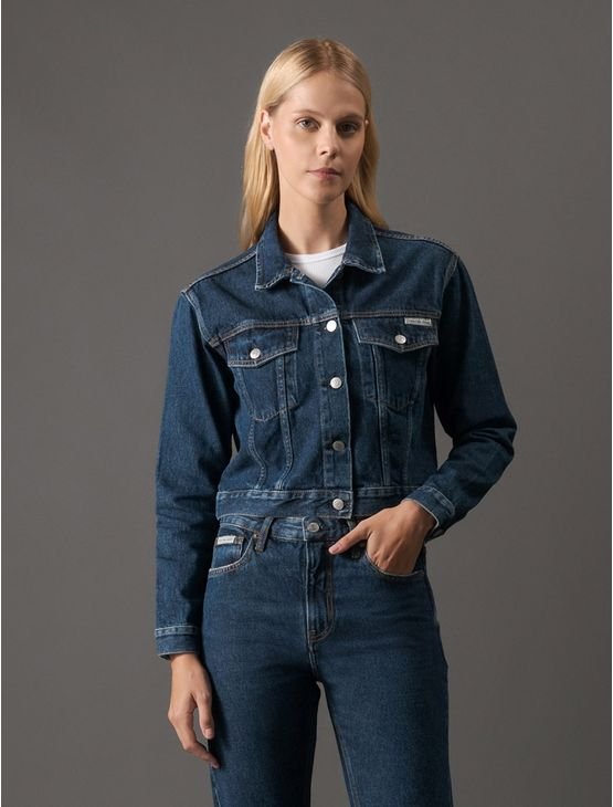 Jaqueta Jeans Feminina Trucker Curta Calvin Klein Jeans – Marinho Jaqueta Jeans Feminina Trucker Curta Calvin Klein Jeans Marinho Gg