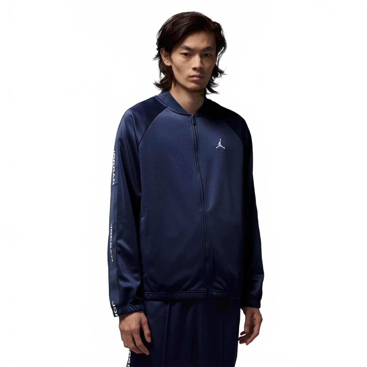 Vista-se do jeito Jordan. O tecido macio de malha dupla e as mangas raglan ajudam a manter esta jaqueta confortável. A fita da marca nos ombros e nas mangas combina com uma gola canelada para adicionar um estilo clássico de agasalho. Benefícios Tecido de malha dupla suave proporciona aquecimento leve. Os bolsos laterais proporcionam um armazenamento seguro para itens pequenos. Detalhes do Produto 100% poliéster Punhos e bainha elásticos Lavável à máquina Importado