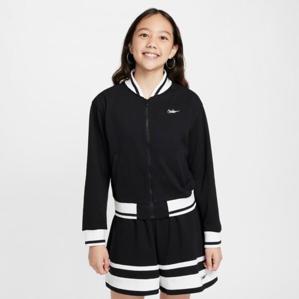 Sirva no estilo pronto para a quadra em qualquer dia da semana. Listras esportivas combinam com bainha, gola e punhos canelados para dar a esta jaqueta com zíper em todo o comprimento uma aparência atlética. Seu corte descontraído deixa muito espaço para camadas, enquanto seu tecido de knit estruturado afasta o suor da pele para uma rápida evaporação, ajudando você a se manter fresco e confortável.Detalhes do ProdutoCorpo: 65% algodão e 35% poliéster. Punho: 100% poliéster. Bolsos: 100% algodão.Lavável à máquinaImportado