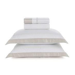 Jogo de Cama 600 Fios 100% Algodão Egípcio Mondello Branco Inspirado na atmosfera elegante e luminosa da praia de Mondello, na Sicília, o jogo de cama Mondello King é um convite ao descanso em sintonia com a brisa do mar Mediterrâneo. Confeccionado em cetim 600 fios de algodão egípcio, seu toque acetinado proporciona uma experiência tátil incomparável. As fronhas com 4 abas e bordado delicado remetem ao movimento da areia sob o sol, enquanto o lençol com elástico ajusta-se perfeitamente ao colchão. Com 2,80 m x 2,80 m, o sobre lençol bordado transforma a cama em um refúgio sofisticado. Um clássico contemporâneo que traduz o equilíbrio entre naturalidade e elegância. Inspirada pela luz dourada e pelo ritmo sereno da Sicília, a linha Cama Trussardi transforma o cotidiano em um ritual de beleza e bem-estar. Cada peça carrega o cuidado dos detalhes e a elegância atemporal, refletindo a riqueza cultural da ilha e sua atmosfera de contemplação. Assim como o tempo desacelera nas vilas sicilianas, o ambiente se torna um refúgio de tranquilidade. Os tecidos suaves, as tramas precisas e os acabamentos refinados evocam o conforto de um lar que acolhe com leveza. É uma coleção pensada para celebrar o descanso como experiência sensível, onde o toque é memória, o silêncio é poesia, e cada noite carrega o encanto de um novo começo.