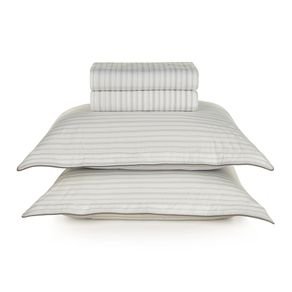 Jogo de Cama Casal 200 Fios 100% Algodão DáliaTransforme o seu quarto com o conforto e sofisticação do Jogo de Cama Dália Casal. Confeccionado em 100% algodão 200 fios, oferece um toque encorpado e altamente respirável, ideal para noites de sono renovadoras. Suas propriedades antipilling e hipoalergênicas garantem durabilidade e cuidado extra para sua pele. O conjunto inclui um sobre lençol estampado com dobra feita e bainha de 3 cm com medidas 2,20m x 2,50m, um lençol com elástico para ajuste perfeito com medida de 1,38m x 1,88m x 35cm e duas fronhas 50cm x 70cm estampadas com três abas de 4 cm e cordonê aplicado, combinando delicadeza e funcionalidade. A combinação de cores branco e verde traz um toque de frescor ao ambiente e as linhas horizontais tornam a combinação mais leve e discreta. Para uma decoração harmoniosa, combine com a colcha e o edredom da mesma linha que tem o fundo um pequeno pied de poule.Pode haver pequena variação de cor, de acordo com a configuração e modelo do monitor ou do aparelho celular. Consultar a cor nas especificações técnicas do produto.Toque soft 200 O Toque Soft da Karsten abraça você com o mais puro algodão 200 fios feitos com fio penteado 100% brasileiro. Mais encorpado e macio, reduz o atrito com a pele, sendo altamente respirável e ajudando a regular a temperatura corporal. Com ação antipilling e hipoalergênico, oferece durabilidade e cuidado para peles sensíveis. Perfeito para quem busca noites tranquilas e um toque de sofisticação no dia a dia. Karsten: cuidado e aconchego em cada detalhe.Coleção InstantesPara acompanhar seus melhores momentos, a coleção Instantes da Karsten, vem com cores delicadas e detalhes que agregam valor aos seus momentos com o toque do puro algodão junto de tecnologias de produção de ponta para entregar produtos de qualidade. Viva cada momento com o conforto e aconchego que a Karsten busca proporcionar em sua vida e aprecie cada segundo do seu bem-estar e da sua família.