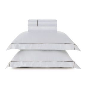 Jogo de Cama Casal 300 fios Bambu Girelli Branco/Nocciola Evocando a pureza dos corredores verdes do Labirinto della Masone, o jogo de cama Girelli Casal Branco com Nocciola equilibra frescor e requinte com naturalidade. Sua confecção em cetim 300 fios de bambu confere um toque surpreendentemente sedoso, com respirabilidade ideal. O sobre lençol mede 2,20 m x 2,80 m e vem acompanhado de duas fronhas de 50 cm x 70 cm, ambas com acabamento em ponto royal. O lençol com elástico, de 1,40 m x 2,00 m x 40 cm, proporciona ajuste exato ao colchão. Um conjunto que transforma o quarto em um espaço de conforto natural e beleza refinada. Inspirada pela luz dourada e pelo ritmo sereno da Sicília, a linha Cama Trussardi transforma o cotidiano em um ritual de beleza e bem-estar. Cada peça carrega o cuidado dos detalhes e a elegância atemporal, refletindo a riqueza cultural da ilha e sua atmosfera de contemplação. Assim como o tempo desacelera nas vilas sicilianas, o ambiente se torna um refúgio de tranquilidade. Os tecidos suaves, as tramas precisas e os acabamentos refinados evocam o conforto de um lar que acolhe com leveza. É uma coleção pensada para celebrar o descanso como experiência sensível, onde o toque é memória, o silêncio é poesia, e cada noite carrega o encanto de um novo começo.