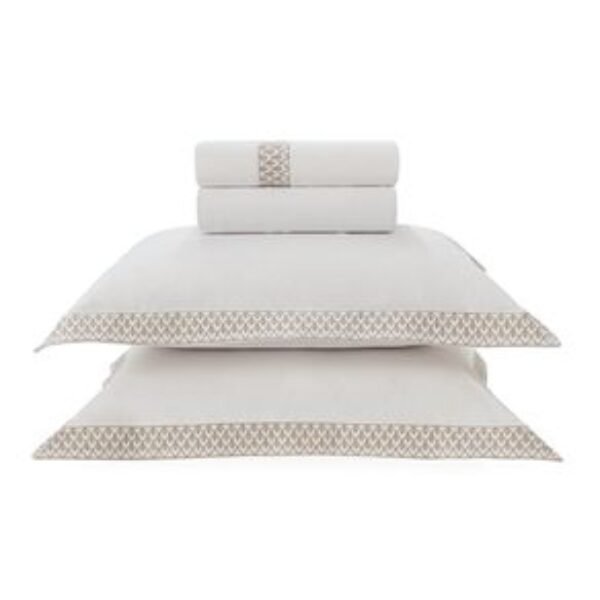 A beleza a arte na sua rotina O Jogo de Cama Trussardi tamanho Casal Andreani é puro requinte com um belo toque artístico, traz em seu bordado, detalhes arquitetônicos que retratam o ar contemporâneo do bairro Porta Nuova em Milão. Sua confecção é em 100% Algodão, Percal 300 fios, tecido sanforizado e mercerizado. O Percal promove maior ventilação e frescor, traz mais vivacidade a cor, possui acabamento fosco e caimento encorpado. Encanta pelo toque de brilho e por seu caimento suave e macio. Il Ritmo Del Tempo traz a grandiosidade e a cultura requintada de Milão, que se traduz na jornada do existir e do tempo; a história significativa, entre dança de curvas, pontos, direções, o que são possíveis formatos de estado de espírito, com seus costumes próprios e sensações singulares. Através de toda essa grandeza, nasce um novo momento, cheio de traços delicados e formas artísticas. Dessa forma é Andreani, que tem sua inspiração no bairro Porta Nuova.