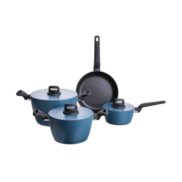 Fabricado em alumínio com fundo em aço inox, o Jogo de Panelas Glamour Bluestyled é feito para durar. Seu revestimento interno antiaderente em multicamadas, sem níquel e livre de PFOA. A limpeza é facilitada e as panelas se conservam belas por muito mais tempo. Cuidados: untar com um pouco de óleo antes de cozinhar. Lavar com uma esponja macia, água e detergente. Pode ir a lava-louças. Para conservar o tratamento antiaderente, manipule os alimentos com utensílios de madeira, nylon ou silicone. Atenção: não vai ao forno ou micro-ondas. Evite aquecer a panela vazia por longos períodos. Não limpar com produtos abrasivos. Características: – Espessura da panela: 3 mm. – Adequado para fogão: indução, gás, elétrico e vitrocerâmico. Contém: 1 Caçarola 24CM – 5,5L 1 Caçarola 20CM – 2,2L 1 Caçarola 16CM – 1,6L 1 Frigideira 24CM – 1,8L Presente na indústria italiana desde 1775, a Tognana se tornou no século XX uma das maiores produtoras de porcelana de alta qualidade do país. Atualmente, a Tognana possui linhas de panelas de longa duração, design exclusivo e patente de eficiência energética. O mix de produtos, que inclui artigos de cozinha, mesa posta e decoração de interiores, é comercializado ao redor do mundo, totalizando 25 milhões de peças vendidas a cada ano. Camicado, casa com seu estilo.