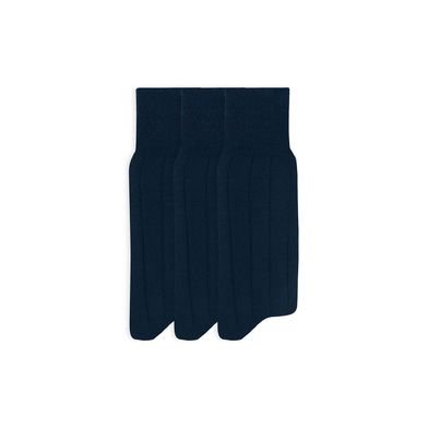 Kit 3 Pares Meia Social Cano Longo Algodão Canelada Azul Marinho