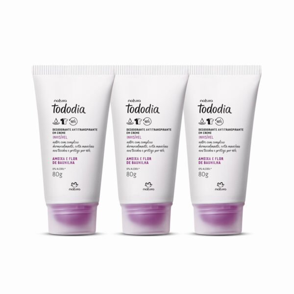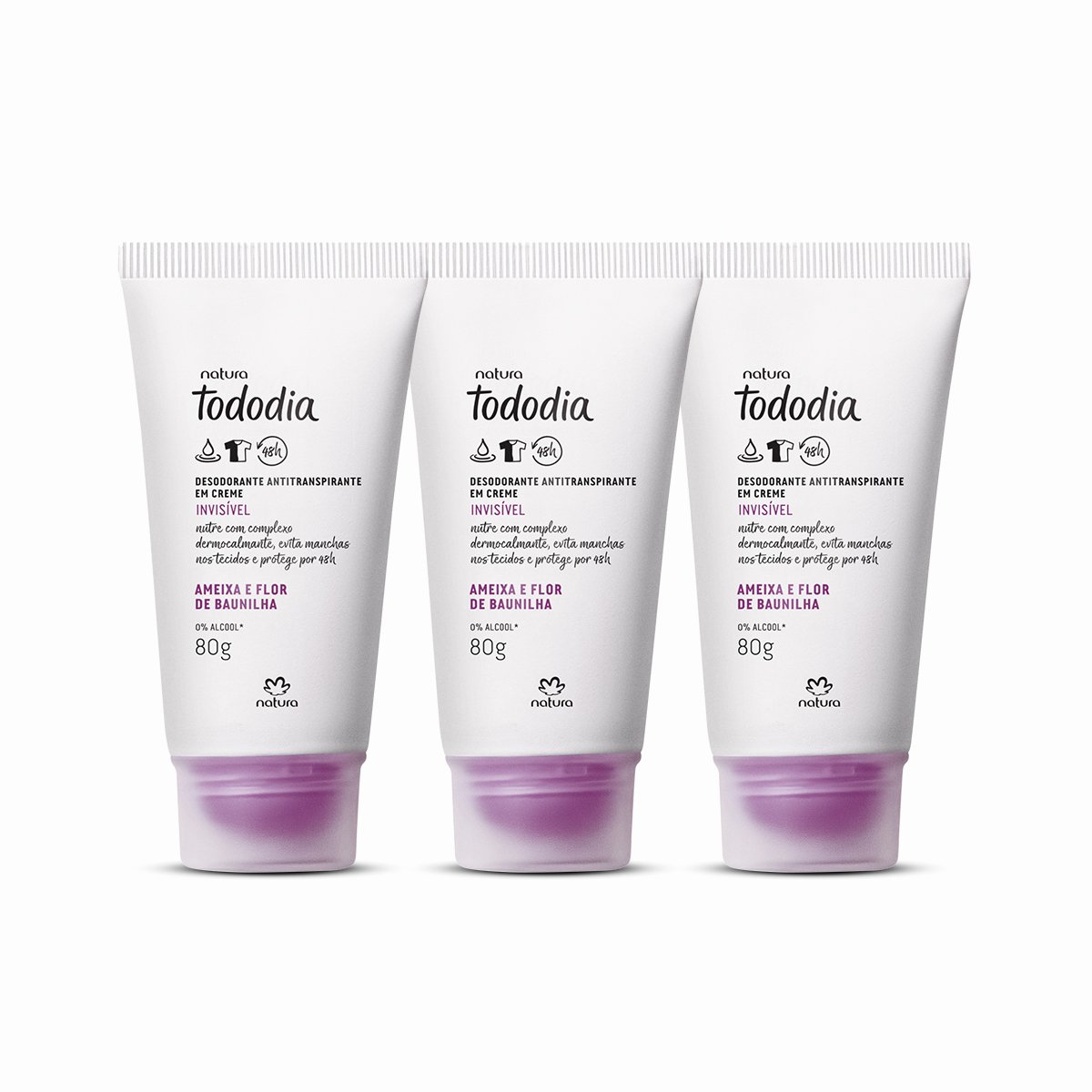 • o Desodorante Antitranspirante em Creme Ameixa e Flor de Baunilha possui uma fórmula exclusiva que garante 48 horas de proteção contra os efeitos do suor • sem deixar manchas nas roupas • com complexo dermocalmante enriquecido com pró-vitamina B5 • ele nutre, hidrata e cuida da pele das axilas, oferecendo conforto no dia a dia • além de perfumar suavemente, prolonga a agradável sensação de pós-banho com frescor • é fácil de aplicar diretamente nas axilas • tem rápida absorção contém: 3 desodorantes antitranspirantes em creme Ameixa e Flor de Baunilha 80 g
