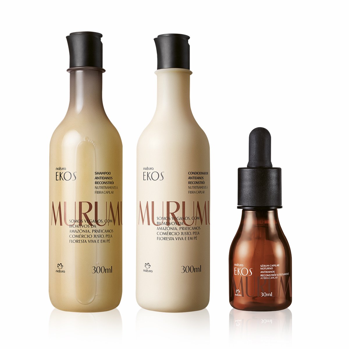 • fórmulas com manteiga bruta de murumuru • o shampoo limpa e nutre os fios, combatendo o ressecamento e danos capilares • o condicionador reconstrói a fibra capilar, deixando os cabelos mais macios e hidratados • o sérum noturnoatua na formação do fio, reconstruíndo seu cabelo desde a raiz. sua fórmula potente aumenta a produção de queratina da fibra capilar em até 35%* e repõe os nutrientes, estimulando os fios a nascerem com melhor textura, com aspecto mais saudável e mais preparados contra as agressões externas. contém: 1 shampoo Ekos Murumuru 300 ml 1 condicionador Ekos Murumuru 300 ml 1 sérum noturno nutritivo Ekos Murumuru 30 ml