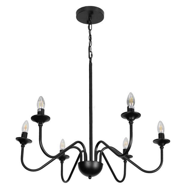 O lustre, também conhecido como lustre candelabro, é um produto que possui ramificações (braços) para ser utilizado com diversas lâmpadas. Uma peça que pode ser usada como iluminação principal ou para compor a decoração dos ambientes. O lustre de metal Colonus comporta seis lâmpadas vela de soquete E14 (não inclusas), com potência máxima de 5W.Além de possuir design clássico, ele é produzido em metal com acabamento fosco na cor preta fosca. Um item repleto de elegância e sofisticação, que pode ser utilizado em salas de estar e jantar, cozinhas, escadas e halls de entrada. O prazo de garantia do fabricante não abrange quebras, trincas em vidros ou acrílicos.