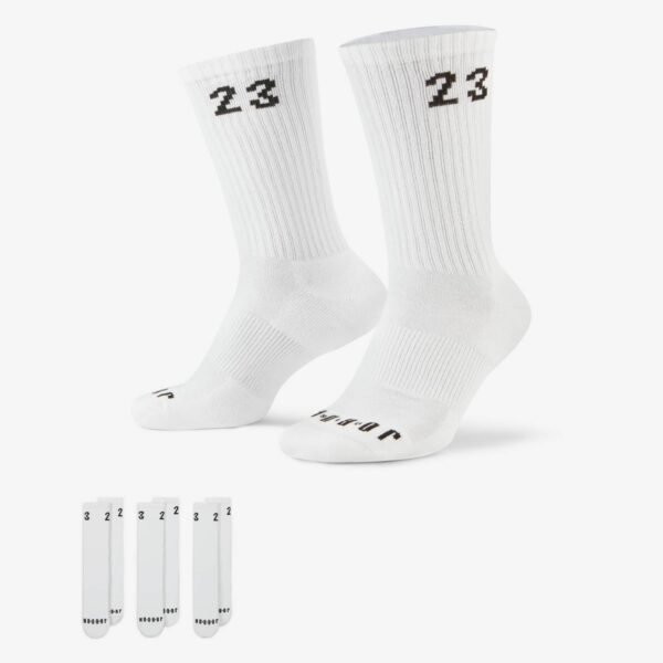 COMPANHEIRO DE TÊNIS TODOS OS DIAS.A Meia Jordan Essentials Crew é macia e elástica, com ajuste de suporte e amortecimento embutido embaixo do pé. 3 pares te preparam para quase metade da semana.BenefíciosA tecnologia antissuor ajuda a manter seu corpo seco e confortável.Amortecimento embutido aumenta o conforto embaixo do pé.A faixa curvada oferece um ajuste firme e seguro.Detalhes do ProdutoEstrutura com nervuras no canoGráficos costurados65% algodão, 31% poliéster, 3% elastano e 1% nylon.Lavável à máquinaImportado