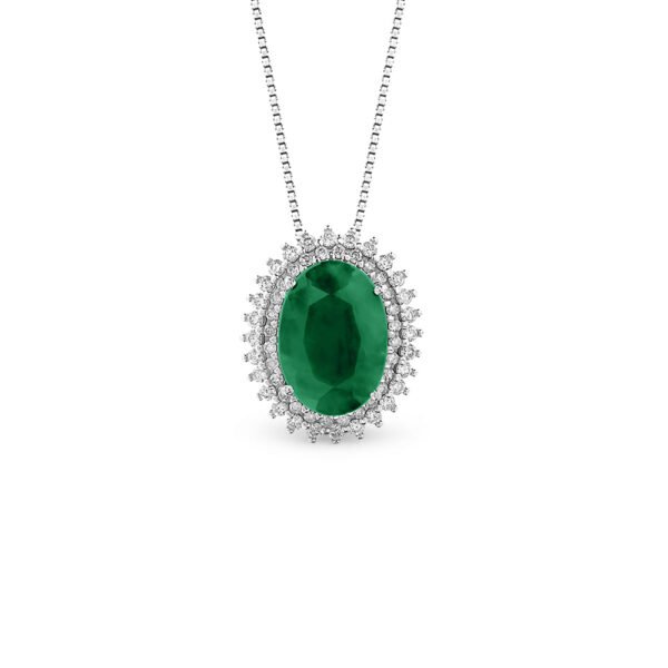 Pingente Classic Especial em Ouro Branco 18k com Esmeralda e Diamantes