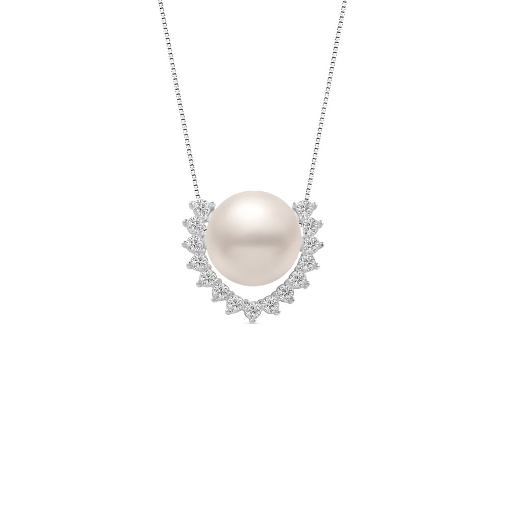 Pingente em Prata 925 com Pérola e Topázios Incolores