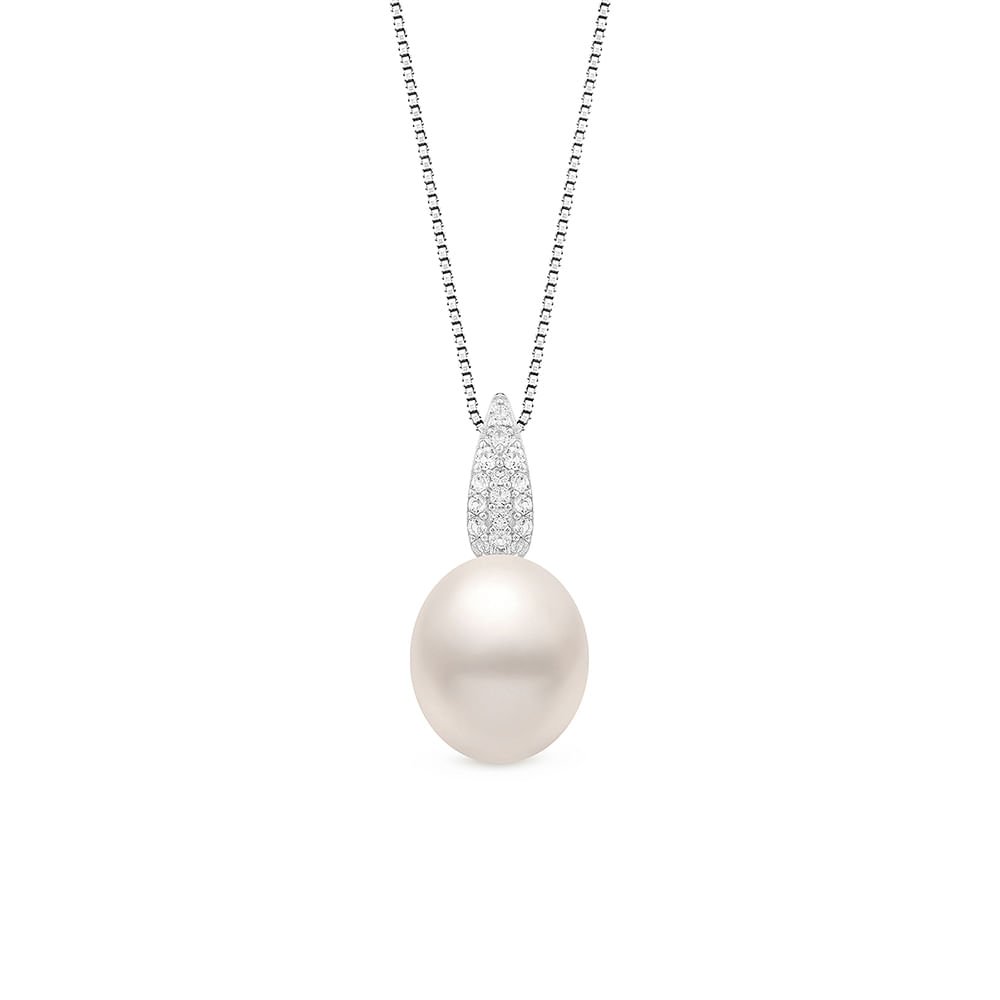 Pingente em Prata 925 com Pérola e Topázios Incolores