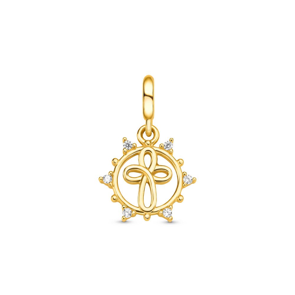 Pingente Life Fé Cruz em Prata 925 com Banho de Ouro Amarelo 18k com Pedras Incolores