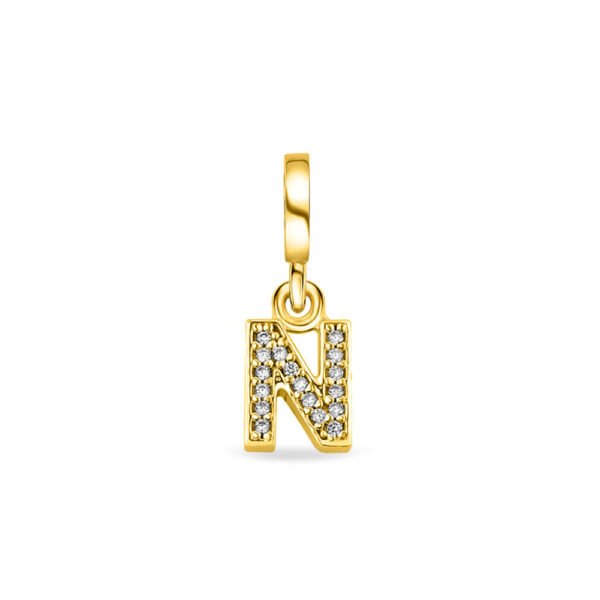 Pingente Life Letra N em Prata 925 com Banho de Ouro Amarelo 18k e Pedras Incolores