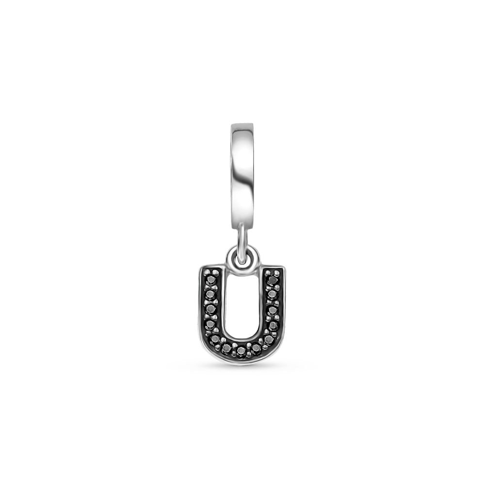 Pingente Life Letra U em Prata 925 com Pedras Pretas