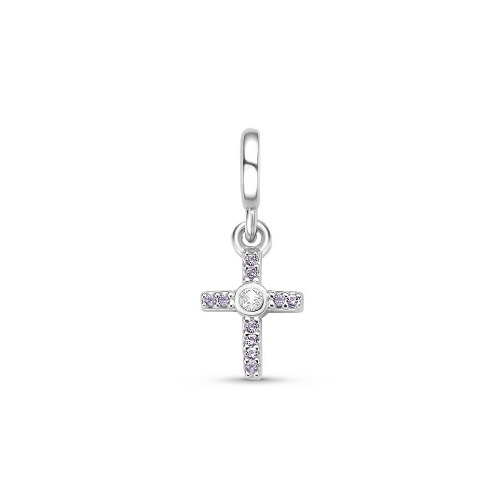Pingente Life Religioso Cruz em Prata 925 com Pedras Lilás