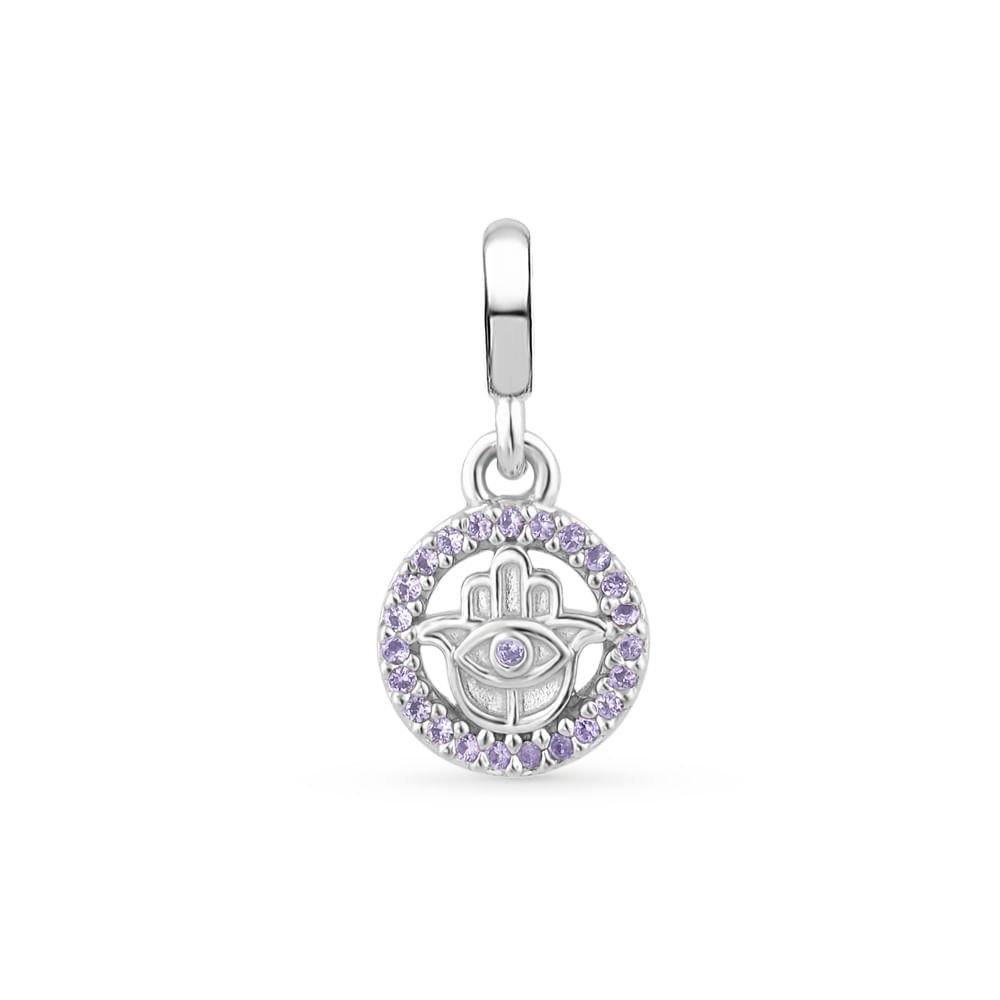 Pingente Life Religioso Hamsa em Prata 925 com Pedras Lilás