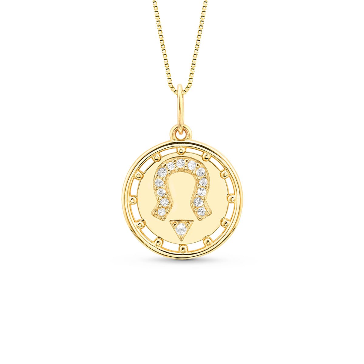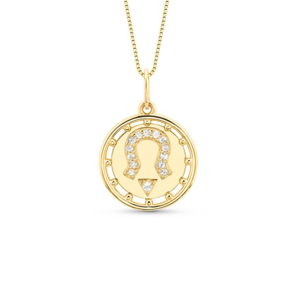 Pingente Medalha Trends Ferradura em Ouro Amarelo 18k com Safiras Incolores