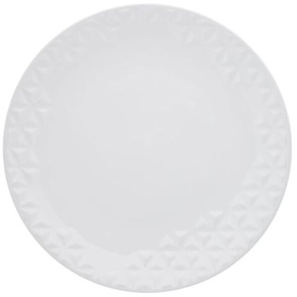 Também com inspiração na geometria, o prato mia traz suaves triângulos em relevo na superfície. distribuído de forma assimétrica ao redor da peça, esse relevo dá um toque de modernidade para o formato mais tradicional do prato de porcelana. nessa opção o prato mia chef é vendido individualmente.