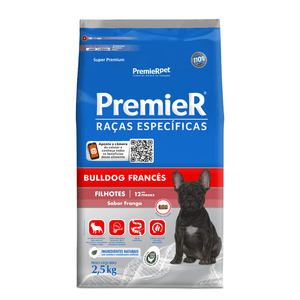 Ração Premier Raças Específicas Bulldog Francês Filhotes FrangoA Ração Premier Raças Específicas Bulldog Francês foi desenvolvida especialmente para cães dessa raça. Com altas quantidades de proteínas e ácidos graxos essenciais, a ração reforça tanto a musculatura do animal quanto deixa sua pelagem mais bonita e macia.Pensando na particularidade desta raça, foi formulada com riqueza de fibras que saciam o filhote ao mesmo tempo que deixam suas fezes mais sólidas e com menos odor. Enriquecida com vitaminas e minerais, prepara o corpo do animal para a fase adulta, tornando-o mais ativo e prevenindo doenças.IngredientesFarinha de vísceras de frango, farinha de torresmo, glúten de milho (não transgênico), glúten de trigo, ovo em pó, proteína hidrolisada de frango, quirera de arroz, celulose, polpa desidratada de beterraba, banha refinada, gordura de frango, óleo refinado de peixe, cloreto de potássio, cloreto de sódio, fosfato bicálcico, ácido propiônico, bentonita, BHA (Butilhidroxianisol), BHT (Butilhidroxitolueno), extrato de yucca (0,06%), frutooligossacarídeos (0,10%), hexametafosfato de sódio, hidrolisado de fígado de aves e suíno, parede celular de levedura (fonte de ß-glucano (0,10%)), parede celular de levedura (mananoligossacarídeos (0,20%)), sulfato de condroitina, sulfato de glicosamina, taurina, acetato de DL-alfa tocoferol, acetato de retinol, ácido ascórbico monofosfato, ácido fólico, ácido pantotênico, biotina, bissulfito de menadiona nicotinamida, cianocobalamina, cloreto de colina, colecalciferol, niacina (ácido nicotínico), piridoxina, riboflavina, tiamina, ferro aminoácido quelato, iodeto de cálcio, manganês aminoácido quelato, selenometionina hidroxi análoga, sulfato de cobre pentahidratado, sulfato de ferro, sulfato de manganês, sulfato de zinco monohidratado, zinco aminoácido quelato.Níveis de garantia (por quilograma) da Ração Premier Bulldog Francês Filhotes Frango Raças EspecíficasUmidade (máx.)10,00%100g/kgProteína Bruta (mín.)28,00%280g/kgExtrato Etéreo (mín.)18,00%180g/kgMatéria Mineral (máx.)7,00%70g/kgMatéria Fibrosa (máx.)3,50%35g/kgCálcio (máx.)1,50%15g/kgCálcio (mín.)1,00%10.000mg/kgFósforo (mín.)0,90%9.000mg/kgSódio (mín.)0,22%2.200mg/kgPotássio (mín.)0,50%5.000mg/kgÔmega 6 (mín.)2,70%27g/kgÔmega 3 (mín.)0,40%4.000mg/kgDHA (mín)0,10%1.000mg/kgEnergia Metabolizável-4.127 kcal/kgEnriquecimento mínimo por kgÁcido fólico 1,00mg, Ácido pantotênico 36,90mg, Biotina 5,00mg, Cobre 13,75mg, Colina 1.900,00mg, Ferro 110,00mg, Iodo 1,88mg, Manganês 8,37mg, Niacina 42,53mg, Selênio 0,20mg, Vitamina A 15.795,00 UI, Vitamina B1 5,63mg, Vitamina B 12 87,08mcg, Vitamina B 2 15,53mg, Vitamina B 6 3,83mg, Vitamina C 200,00mg, Vitamina D3 1.100,00 UI, Vitamina E 400,00 UI, Vitamina K3 0,56mg, Zinco 125,10mg.Por que oferecer uma ração específica?Esta linha de ração da Premier possui formulações exclusivas desenvolvidas para cada uma das raças mais queridas pelos brasileiros. Cada cão tem sua particularidade que precisa ser observada e a Premier é expert no assunto.A Ração Premier para Bulldog Francês, por exemplo, oferece suporte à saúde articular do pet e previne o tártaro. Além disso, possui ingredientes que auxiliam na redução de flatulências. Os tutores da raça sabem como isso é importante!Não exagere na quantidadePor mais que o cão ainda seja filhote, não exagere nas quantidades de comida. Fique atento às doses diárias recomendadas pelo fabricante e evite o sobrepeso do animal.Guia para troca de raçãoCaso haja necessidade em inserir uma nova ração para seu pet, é importante que a troca seja gradual e crescente. Para garantir uma perfeita adaptação e aceitação, você pode seguir a sugestão abaixo ou conforme orientação do médico-veterinário: