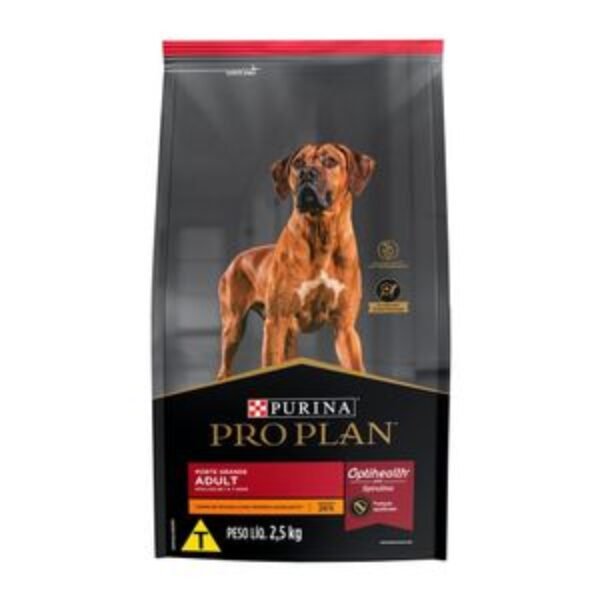 Ração Pro Plan Cães Adultos Raças Grandes FrangoA Ração Pro Plan Cães Adultos Raças Grandes Frango traz o poder da nutrição para saúde e bem-estar do seu cão, com carne de frango como primeiro ingrediente.Nossa tecnologia exclusiva OptiHealth tem uma combinação de nutrientes que inclui espirulina, uma microalga natural com propriedades benéficas para a saúde geral dos cães, cuja eficácia foi comprovada cientificamente.Oferece produtos de alta qualidade, fabricados com ingredientes selecionadosNa Cobasi, você encontra a Ração Pro Plan Cães Adultos Raças Grandes Frango com preço especial.IngredientesCarne mecanicamente separada de frango (16%), milho integral moído*, trigo integral, farinha de vísceras de aves, farelo de glúten de milho-60*, quirera de arroz, polpa de beterraba, espirulina (microalgas Spirulina platensis) (0,2%), gordura de frango (preservada com tocoferóis, fonte de vitamina E), óleo de peixe refinado, zeolita, levedura seca de cervejaria, cloreto de sódio (sal comum), cloreto de potássio, carbonato de cálcio, hidrolisado de fígado de ave e suíno, L-lisina, DL-metionina, vitaminas (A, D3, E, K3, B1, B2, niacina, pantotenato de cálcio, B6, biotina, ácido fólico, B12, C, cloreto de colina), minerais (sulfato de zinco, sulfato ferroso, sulfato de manganês, sulfato de cobre, proteinato de zinco, proteinato de ferro, proteinato de manganês, proteinato de cobre, proteinato de selênio, iodato de cálcio, selenito de sódio), sorbato de potássio, sulfato de magnésio, antioxidante BHT. Eventuais substitutivos: fosfato bicálcico, farinha da alga Schizochytrium sp., ovo em pó, hidrolisado de fígado de aves, hidrolisado de fígado de suíno, gordura suína, sebo bovino (preservado com tocoferóis, fonte de vitamina E) *Ingredientes transgênicos. Espécies doadoras do gene: Agrobacterium tumefaciens, Bacillus thuringiensis, Streptomyces viridochromogenes e Zea may.Níveis de garantia:Umidade (máx.) 120 g/kg (12,0%) Proteína bruta(mín.) 260 g/kg (26,0%)Extrato Etéreo (mín.) 120 g/kg (12,0%)Matéria Fibrosa (máx.) 40 g/kg (4,0%)Matéria Mineral (máx.) 85 g/kg (8,5%)Cálcio (mín./máx.) 10 g/kg / 16 g/kg (1,0 % / 1,6%)Fósforo (mín./máx.) 8.000 mg/kg / 12 g/kg (0,8 % / 1,2%)Sódio (mín.) 2.000 mg/kgPotássio (mín.) 5.500 mg/kgCobre (mín.) 25 mg/kgZinco (mín.) 125 mg/kgLisina (mín.) 7.000 mg/kgMetionina (mín.) 3.000 mg/kgVitamina A (mín.) 13 UI/kgVitaminas E (mín.) 400 UI/kgÔmega 6 (mín.) 13 g/kgÔmega 3 (mín.) 1.500 mg/kgGuia para troca de raçãoCaso haja necessidade em inserir uma nova ração para seu pet, é importante que a troca seja gradual e crescente. Para garantir uma perfeita adaptação e aceitação, você pode seguir a sugestão abaixo ou conforme orientação do médico-veterinário: