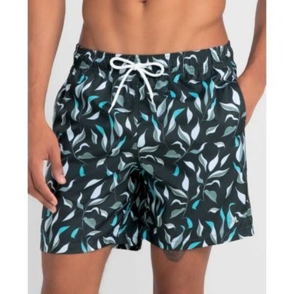 Short Praia Estampado Ramos Eucalipto Plus Size Cinza Chumbo XXGG