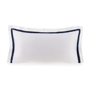 Super Fronha avulsa 300 Fios Vercelli Branco/Azul Siciliano Criada para travesseiros maiores, a super fronha avulsa Vercelli mede 50 cm x 90 cm e se destaca pelo acabamento impecável. Suas 3 abas duplas estruturam a peça com elegância, remetendo à alfaiataria clássica que inspira toda a coleção. O tecido em cetim 300 fios 100% algodão egípcio oferece um toque extremamente suave, brilho acetinado e excelente caimento, além de alta durabilidade. A pala dupla aplicada na face frontal complementa a sofisticação da peça, tornando-a ideal para composições mais volumosas e visuais impactantes na cama. Com a tonalidade Branco e Azul Siciliano, é a escolha certa para quem busca elegância sem abrir mão do conforto. Inspirada pela luz dourada e pelo ritmo sereno da Sicília, a linha Cama Trussardi transforma o cotidiano em um ritual de beleza e bem-estar. Cada peça carrega o cuidado dos detalhes e a elegância atemporal, refletindo a riqueza cultural da ilha e sua atmosfera de contemplação. Assim como o tempo desacelera nas vilas sicilianas, o ambiente se torna um refúgio de tranquilidade. Os tecidos suaves, as tramas precisas e os acabamentos refinados evocam o conforto de um lar que acolhe com leveza. É uma coleção pensada para celebrar o descanso como experiência sensível, onde o toque é memória, o silêncio é poesia, e cada noite carrega o encanto de um novo começo.