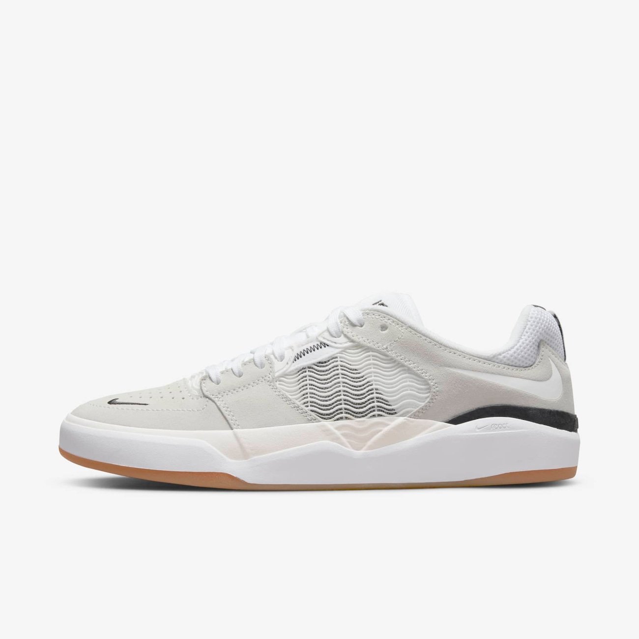 UM NOVO TÊNIS EMBLEMÁTICO COM VIBES OLD SCHOOL.Quando chegou a hora de criar seu tênis conceito, Ishod Wair deu tudo de si do início ao fim. Com elementos baseados nos icônicos tênis de basquete dos anos 90, (você sabia que o basquete foi o primeiro amor de Ishod?) e feito com toda a durabilidade necessária para andar de skate com tudo (sério, dá uma olhada nessa nova forma da sola), o Nike SB Ishod Wair une o estilo original do basquete e a inovação moderna do skate.Referência aos anos 90.As sobreposições em suede durável criam um look clássico. O painel de tela ventilado apresenta sobreposições em plástico flexível e moldado que remetem ao look dos tênis de basquete dos anos 90. O Swoosh invertido no calcanhar remete ao Nike Air Darwin e ao primeiro amor de Ishod, o basquete.Desempenho Nike ReactA palmilha em Nike React é feita com espuma leve e durável, garantindo uma passada suave e ágil, acentuando o contato com o shape.Nova forma da solaO novo design garante a durabilidade da forma da sola com a flexibilidade que você precisa para reduzir o tempo de amaciamento e maximizar os dias de skate. O padrão de espinha de peixe específico para o skate na parte de baixo utiliza dados para colocar aderência onde você mais precisa.Detalhes do produtoA tira no médio pé envolve e dá sustentação aos pés enquanto você anda de skate.