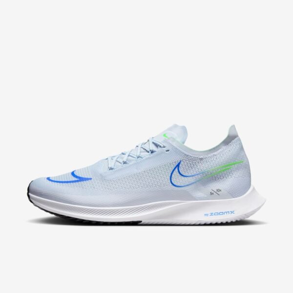 VELOCIDADE DA LUZ.O Nike ZoomX Streakfly é o tênis de corrida mais leve da Nike e proporciona a velocidade necessária para competições de qualquer distância. O perfil baixo com com detalhes elegantes torna o tênis imperceptível em seus pés, ajudando a se concentrar melhor na estrada e a atingir seus recordes pessoais.Baixo e ágilA entressola ZoomX de comprimento total proporciona agilidade e leveza. A plataforma de espuma é mais baixa do que o Vaporfly, reduzindo o peso e proporcionando uma sensação mais precisa. O resultado é um tênis tão leve que desaparece do pé, ao mesmo tempo que oferece a proteção ágil da espuma ZoomX, ajudando a alcançar seu ritmo mais rápido durante curvas e acelerações em qualquer corrida.Suporte e elegânciaA parte de cima em malha ultrafina é leve e oferece o suporte necessário para suas corridas. O reforço extra no antepé proporciona mais segurança. O sistema de cadarços atualizado e elegante apresenta um desvio lateral com uma língua entalhada para aliviar a pressão na parte de cima do pé.Conforto onde mais importaA sola foi criada com base em dados de corredores. Ela usa essas informações para posicionar a tração onde você mais precisa, com um padrão que se conecta ao chão com base em sua dinâmica de pisada. O resultado é uma aderência robusta do impacto com o solo à projeção do pé, ajudando a obter uma vantagem na competição.BenefíciosA língua parcialmente integrada proporciona um ajuste seguro.
