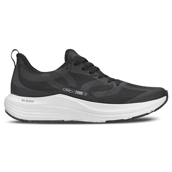 O Olympikus Corre2 é a evolução do Corre1, o nosso melhor tênis de corrida até então. Com o desafio de evoluir o produto, o desenvolvimento do Corre2 contou novamente com um time de especialistas e desta vez, também com o apoio do Laboratório de Biomecânica da USP. A combinação das novas tecnologias de solado e cabedal resultou em um produto extremamente leve, com 42g a menos que a edição anterior, proporcionando muito mais amortecimento e o conforto ideal para uma melhor performance em corridas diárias, treinos longos ou maratonas. A entressola foi desenvolvida com a nova tecnologia Eleva, que explora o limite de expansão do EVA para alcançar máxima resposta, mantendo o conforto e a durabilidade. Este EVA é leve e de baixa densidade, garantindo menor deformação. Possui borracha antiderrapante com a tecnologia Gripper Plus na região dianteira, que aumenta a maciez e conforto na passada. Seus pequenos recortes aumentam a flexibilidade. Na região do calcanhar, conta com borracha compacta na tecnologia Gripper, que aumenta a resistência à abrasão e proporciona estabilidade na aterrissagem da passada. O design da planta do solado foi inspirado no leito do Rio São Francisco, reforçando nossa raíz brasileira. O cabedal é desenvolvido em gáspea retilínea com a tecnologia Oxitec, que possui estrutura de monofilamento com elastano. Esta combinação proporciona leveza, respirabilidade e um maior conforto térmico para a corrida. Além disso, não absorve a água e impede o aumento de peso do calçado em corridas nos dias de chuva. Também possui aplicação de laminado fusionado em TPU acima do tecido, com uma identidade maximalista do logo e que dita o caminho estético de toda a coleção Corre. Possui atacador composto por tecido poliéster texturizado e o puxador em fita na parte traseira conta com aplicação de material refletivo para maior segurança nas corridas noturnas.